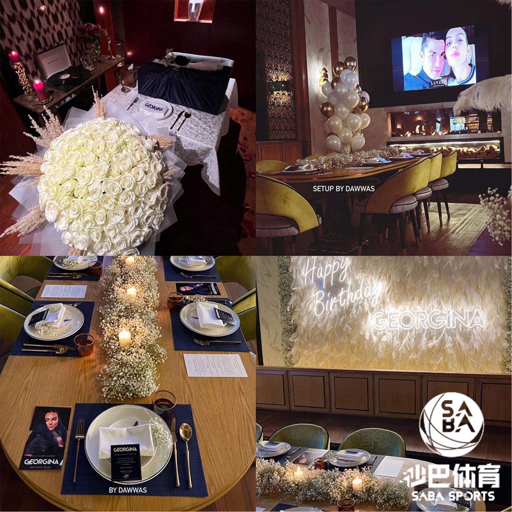 【十大足球外围平台sabasports】1月27日是葡萄牙足球巨星C罗(Cristiano Ronaldo)女友乔治娜的29岁生日。近日,C罗就在社交平台上更新了社交动态,他晒出了自己为女友乔治娜庆生的照片。从照片可见,C罗为其预定了利雅得当地著名餐厅包厢庆祝,乔治娜着白色长裙、携子女出席约会。而在餐厅的现场,布置得也非常精致,准备了一大束白玫瑰,在约会地点周围挂上了多张两人的甜蜜合影,秀起了恩爱。C罗和乔治娜在2016年底相识,至今乔治娜为C罗生下2个女儿,但两人一直还没结婚。
