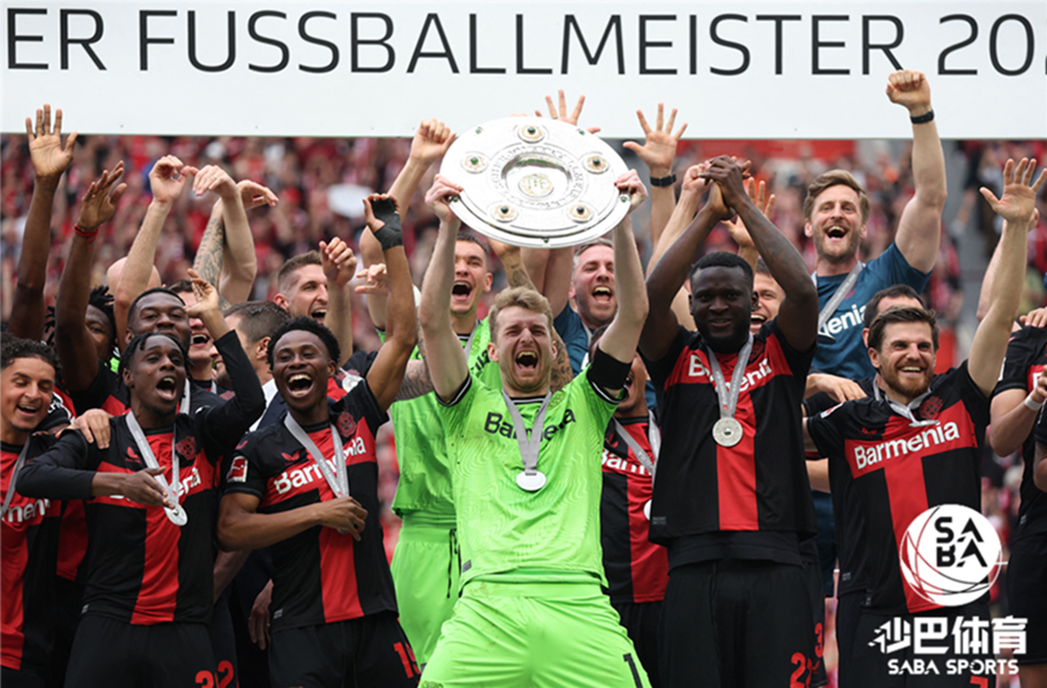 德甲收官战,勒沃库森主场2-1战胜奥格斯堡,他们以不败战绩夺得了本赛季的德甲冠军。勒沃库森也成为德甲历史上首支以不败战绩夺冠的球队,也是第四支以不败战绩夺得联赛冠军的五大联赛球队。勒沃库森主打3421阵式,当他们从后场发动进攻时,三后卫经常转变为双后卫阵型,一名中后卫进入到防守中场区域。边后卫在靠近边线的位置提供传球选择,为球队提供组织进攻所需的宽度和紧凑度。值得一提的是,勒沃库森的进攻端表现尤为突出。本赛季至今,勒沃库森仅有1场比赛交出白卷,球队的场均进球率高达惊人2.6球,进攻火力恐怖如斯。