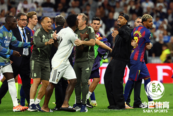 [足球外围平台sabasports]上周末西甲迎来万众期待的焦点赛事,皇家马德里主场对阵巴塞罗那,然而本轮比赛火药味甚浓,比赛期间皇家马德里球员维尼修斯(Vinicius Junior)与巴塞罗那球员亚马尔(Lamine Yamal)爆发了冲突。事件发生在比赛下半场加时阶段,巴塞罗那球员佩德里(Pedri)在推进过程中铲倒皇马球员楚阿梅尼(Aurélien Tchouaméni),被裁判出示第二张黄牌罚下,这一事件成为了赛后冲突的导火索。当亚马尔走近边线时,维尼修斯走向他,做了 “话太多” 的手势,两人交换了几句话,维尼修斯突然冲向亚马尔,最终四名皇马工作人员合力拦住了他。国家德比作为西班牙足球的焦点赛事,其影响力巨大。这次冲突事件可能会让外界对西甲联赛的管理和球员的素质产生质疑,影响联赛的声誉和形象。小编认为,俱乐部和联赛应该加强对球员的教育,提高他们的职业素养和情绪管理能力,让他们明白在比赛中要保持冷静和理智,避免冲突的发生。