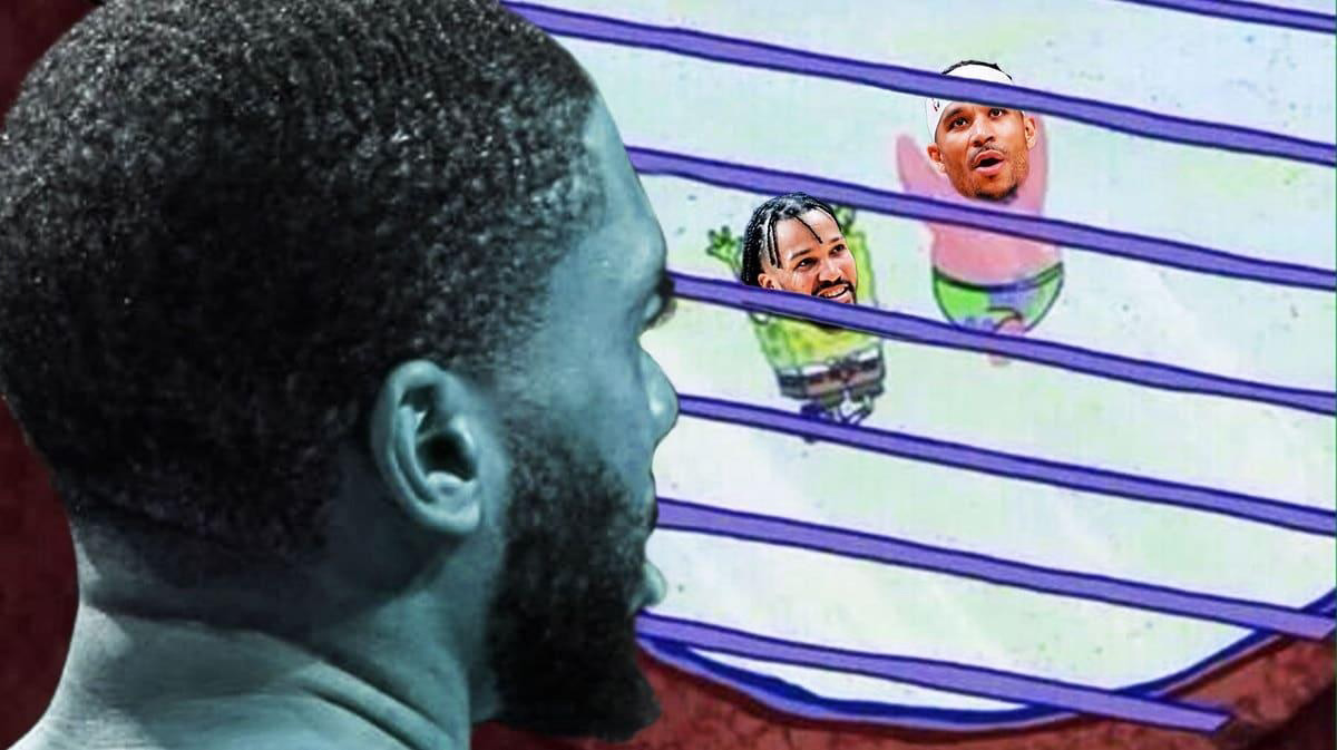 (足球外围平台saba sports)近日,尼克斯队的球员哈特(Josh Hart)在一次采访中透露了对篮网队球员布里奇斯(Mikal Bridges)的独特见解,引起了广泛的关注。 谈及布里奇斯目前在篮网的处境,哈特形象地表示:“就像那个表情包,布里奇斯就像是章鱼哥,在窗外看着海绵宝宝和派大星玩得很开心 。”