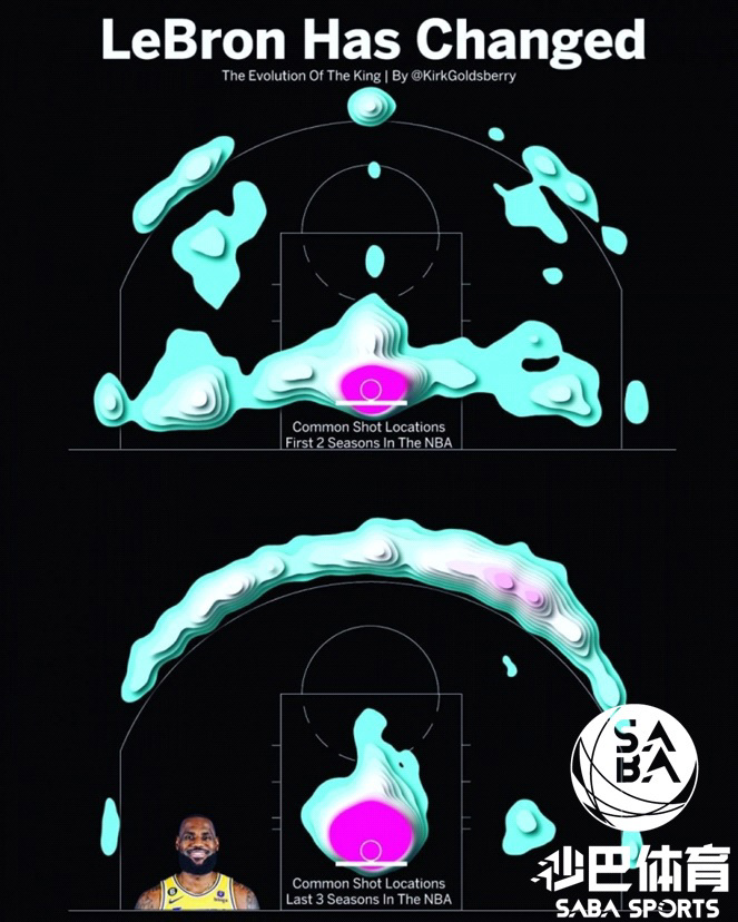 (十大足球外围平台saba sports)近日,NBA数据专家Kirk Goldsberry绘制了湖人球星詹姆斯(LeBron James)生涯前两个赛季和近三个赛季的投篮出手热区对比图。 如新闻附图所示,近三个赛季詹姆斯的出手点主要集中在弧顶以及45度角的三分线外、篮下和左侧中距离。两侧底角则较少。 而在生涯前两个赛季,詹姆斯更多地是在篮下以及底线中距离位置出手,三分线外较少。 "(足球外围平台saba sports)此前一场NBA常规赛中,湖人最终98-112不敌热火。对此,湖人球星詹姆斯(LeBron James)接受了采访。 詹姆斯表示自己仍然想夺冠时说道:“从团队的角度来说,我目前能打出这个水平,不想就此结束职业生涯。我仍然想去争夺总冠军。若阵容合适,我知道我能为任何球队带来应有的表现。”" CBA詹姆斯 NBA,凯尔特人,骑士 时代 足球外围平台,十大足球外围平台官网,Saba Sport,足球外围平台网,sabapapa,saba-papa,体育视频,体育新闻,足球外围平台比分,十大足球外围平台报导 进化 随着