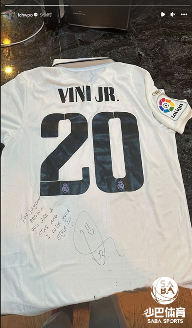 【足球外围平台sabasports】刚刚NBA波士顿凯尔特人球星布朗在社交平台更新了社交动态,他晒出了自己收到了西甲皇马球星维尼修斯(Vinicius Junior)送赠的签名球衣,十分开心。维尼修斯的球衣上海写了一段话,他写道:“献给杰伦–布朗,你是一个明星,我爱你的风格!”值得一提的是,维尼修斯尽管是一位职业足球运动员,但他非常爱看NBA,每逢长假维尼修斯都会飞往美国看NBA赛事,而波士顿凯尔特人便是维尼修斯喜爱的球队。就在此前NBA湖人球星詹姆斯生涯总得分超越贾巴尔成为NBA历史得分王那天,维尼修斯也在社交平台上发文祝贺了詹姆斯。
